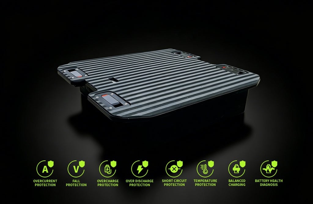 G3 batteries have an eight fold safety protection system: * * overcurrent protection, drop protection, overcharge protection, overdischarge protection, short circuit protection, temperature protection, balanced charging, and battery health diagnosis * *, ensuring safe, stable, and long-lasting operation in various environments.